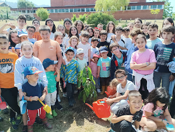 O alumnado do centro realizou unha recollida de lixo no patio do colexio e ao finalizar viñeron ver a árbore que plantaron os nenos e as nenas de 3 anos.
